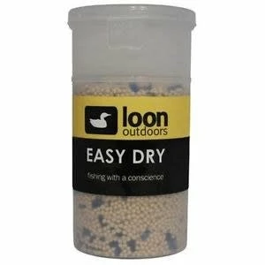 Intended for drying flies saturated from use. Just place flies with leaders still attached into the container and shake. Water will be sucked from the fly and leave it ready for floatant. Blue indicator crystals turn pink when desiccant needs replacing.
