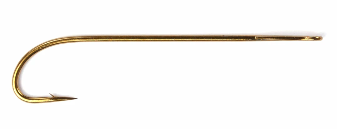 Bronze finish, modified limerick bend, tapered-loop eye, 3X-heavy wire, 7X-long shank