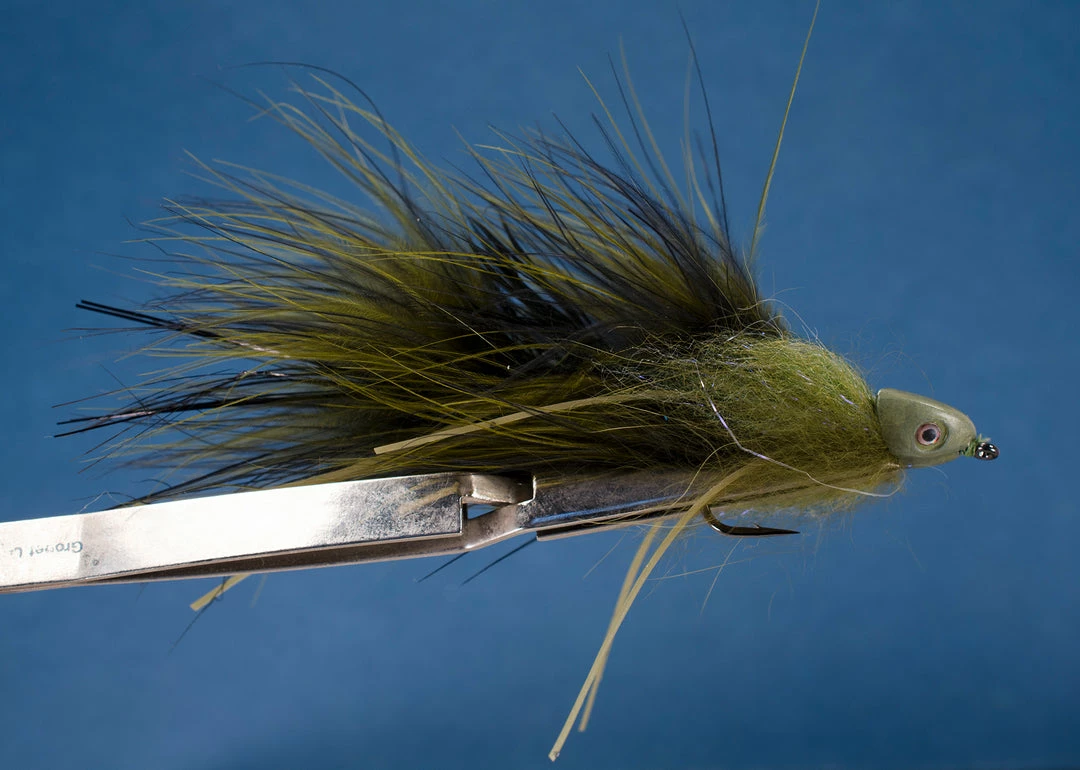 A great large sculpin imitation with unbelievable movement. The sculpin helmet makes this ride hook point up. (Upside down from photo)