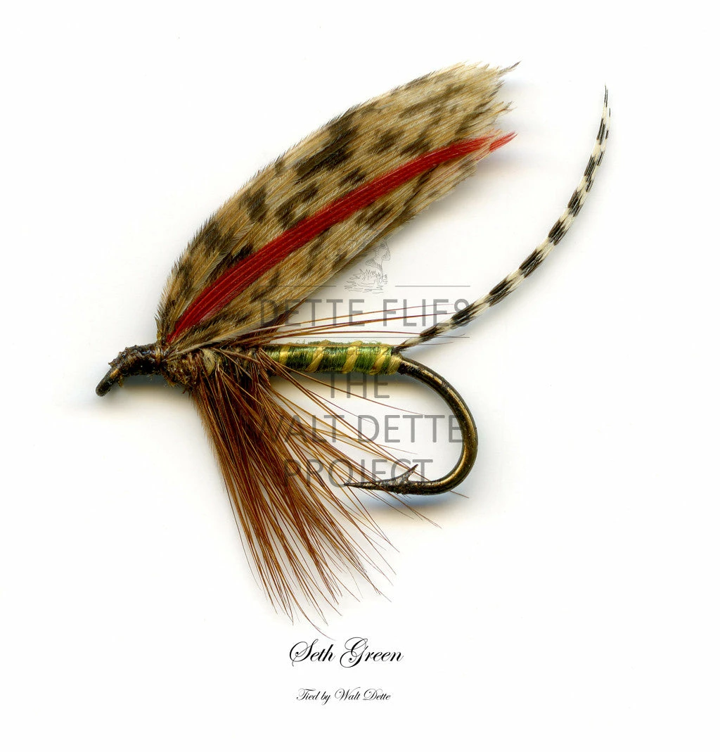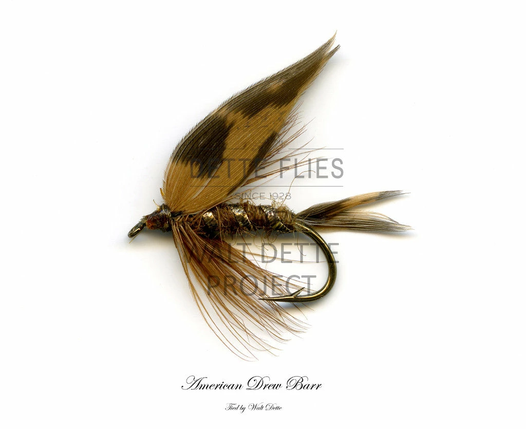Printed images of 28 classic wet flies tied by Walt Dette have been produced, matted, signed and archived by Dickson Despommier. Each framed print will be accompanied by a certificate of authentication signed by Joe Fox, great-grandson of Walt Dette, an image of the fly in its cellophane file printed at actual size if applicable, and a description of the production methods used to produce each example.