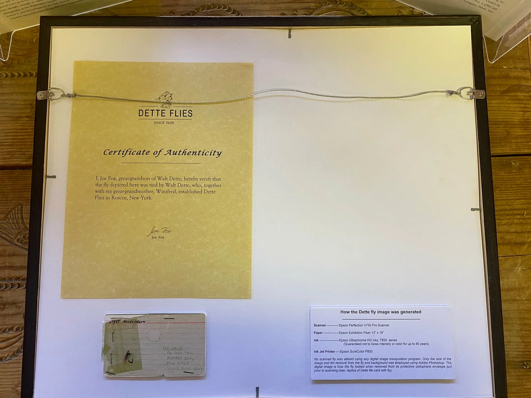 Celebrate the life and tying excellence of Walt Dette by owning a framed image of an actual fly tied by one of the original members of the world famous Catskill style of fly tying fraternity.