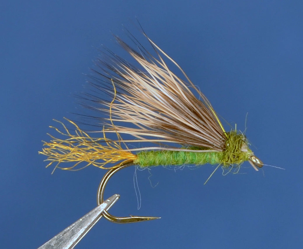 A simple, but very effective caddis emerger pattern. Adapted from the Neff caddis, which lacked a shuck.