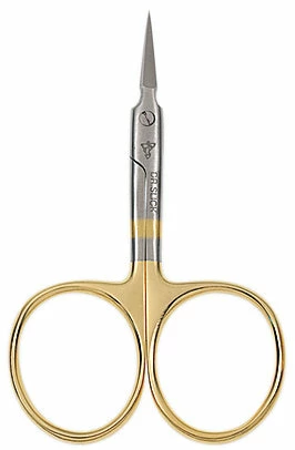 Short fine-bladed scissor designed for small flies and detail work. The notch at the base of the blades is designed for cutting wire and lead. Excellent for natural materials and can handle most synthetics. Great scissor for in-hand tyers.