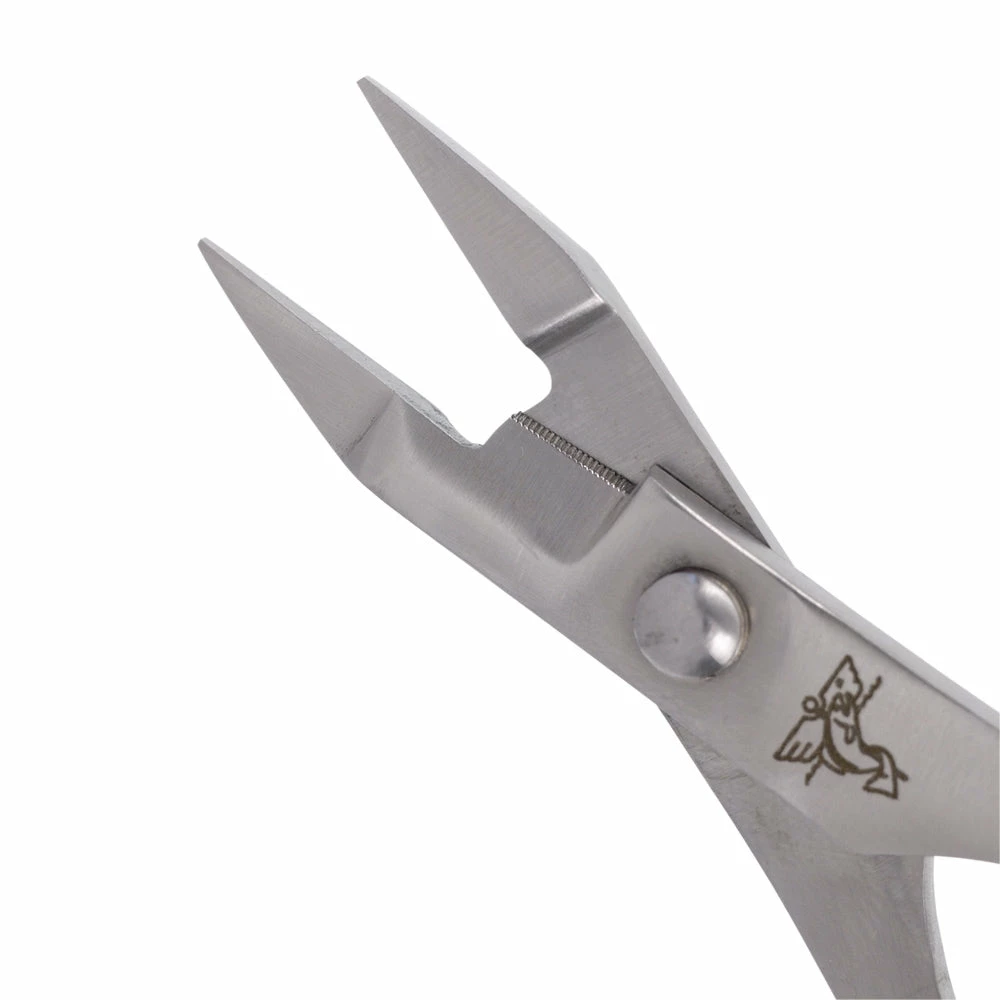 Designed to crush barbs and work with small flies. This clamp features a heavy box blade scissor for cutting really stout materials. A smooth-jawed more powerful version of the popular scissor clamps.