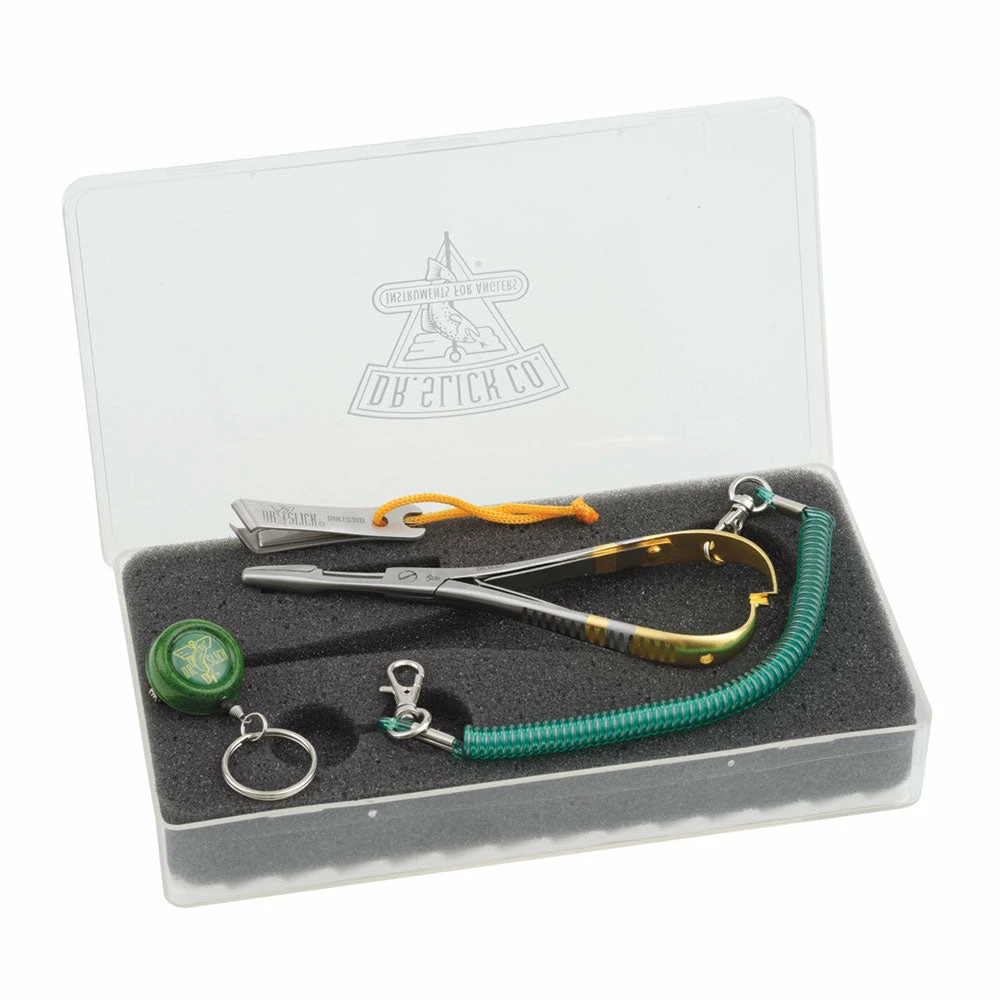Each set includes a Mitten Scissor Clamp, nipper, zinger reel and large ripple foam fly box.