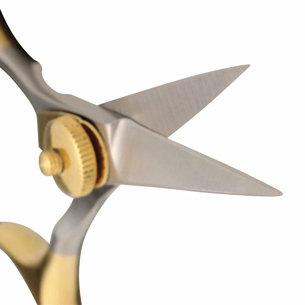 Possibly the sharpest scissors ever created. Think razor blades with handles. These thin blades with a razor edge make short work of all materials. Adjustable tension allows for loosening or tightening as materials warrant. Cuts through natural and synthetic materials like butter. Made from 440 grade steel. These are the ultimate tying scissors.