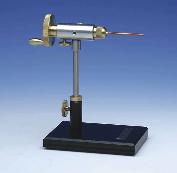 The Tube Fly 2002 is machined with a combination of stainless steel & brass and is fitted with precision ball bearings for smooth rotation. A knurled friction screw is conveniently located on the side of the vise to control rotational drag.