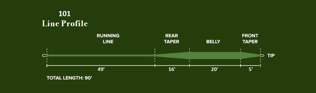 The 101 utilizes our supple and relaxed braided fiber core. The low to moderate stretch rating gives the angler some shock absorbing properties while using extra delicate tippet and the ability to relax or straighten the line with a light hand stretch, while still allowing for sensitivity and low effort hook-sets. The core alone, by nature, holds zero reel memory helping to create a fly line that remains relaxed from the heat of July to sub-freezing January temperatures.