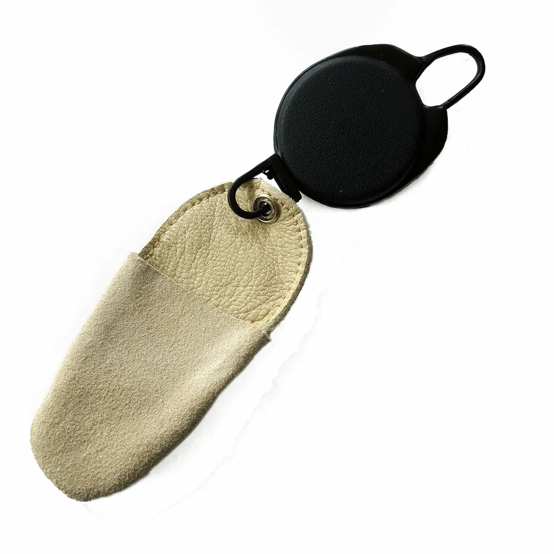 Allows you to hold fish by its lower jaw – thus immobilizing it – while you remove the hook. Simple, quick way to avoid damage to fish, fly and you. Complete protection against sharp fish teeth. Soft, supple goat leather won’t stiffen or shrink. Hangs from your vest by extra-length retractor. Designed for trout, bass, steelhead and salmon.