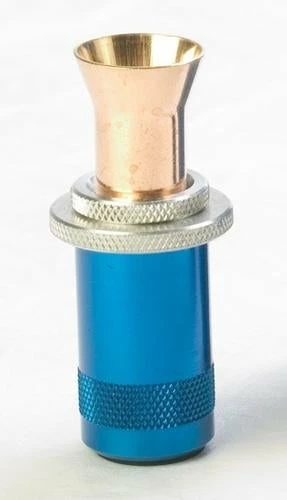 Many requests for a hair evener to stack short coastal deer hair and calf body hair led to this design. Threaded inserts in the base allow for adjustments from 1/16″ to 1/2″, depending upon hair length. Overall length: 2 1/4″ to 2 3/4″, funnel length: 1 3/4″, funnel opeining: 5/8″