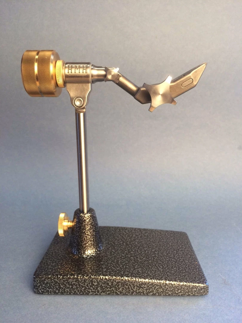 HMH’s latest and greatest addition to their vise line. The TRV is the first vise HMH has made with a True inline Rotary action. This means the hook shank can be aligned with the axis of rotation of the vise, allowing materials to be held while the hook is rotated. Great for dubbing loops, chenille, tinsel, or palmering a hackle! Jaws are cast in true HMH style out of tool steel, other than the jaws, all parts are stainless steel, brass or powdercoated for protection. The Jaws are the new Generation 2 with black oxide (gun blueing) coating. The TRV comes only with the impressive brass palm wheel