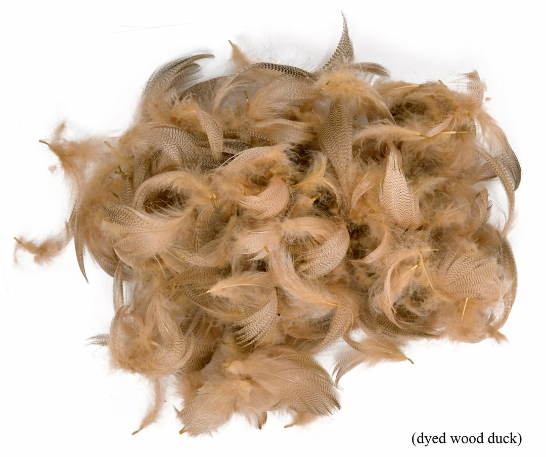 These feathers are widely used among fly tyers for wings and tails on all types of flies. The wood duck mallard flanks are dyed to closely resemble natural wood duck sides.