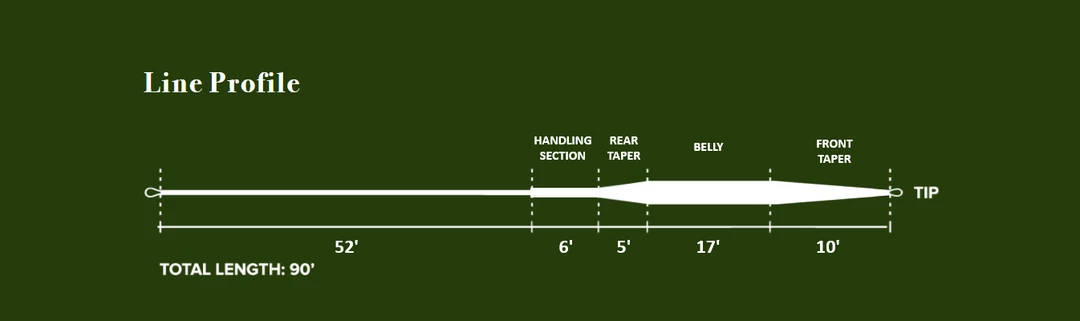 Our Precision Dry Fly taper was designed specifically with the hardcore dry fly enthusiast in mind. The extended front taper allows for the most accurate and delicate presentations to lay those tiny dries on the water like a feather exactly where you need it. The head also incorporates a handling section after the rear taper to improve loop stability and to help the angler make on-water mends from greater distances.