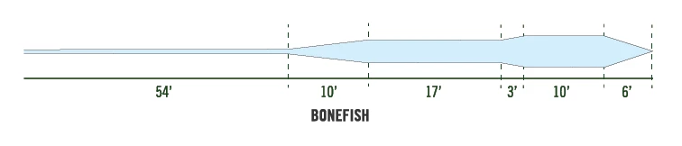 The Bonefish taper gives the angler the perfect mix of a gentle stealth presentation paired with the aggressiveness to combat high wind conditions and deliver long accurate casts. With an aggressive front-taper design paired with a more elongated belly and gradual rear taper, this line will still shoot line effortlessly but will allow for a more delicate landing on the water which is key when fishing shallow flats to spooky Bonefish.