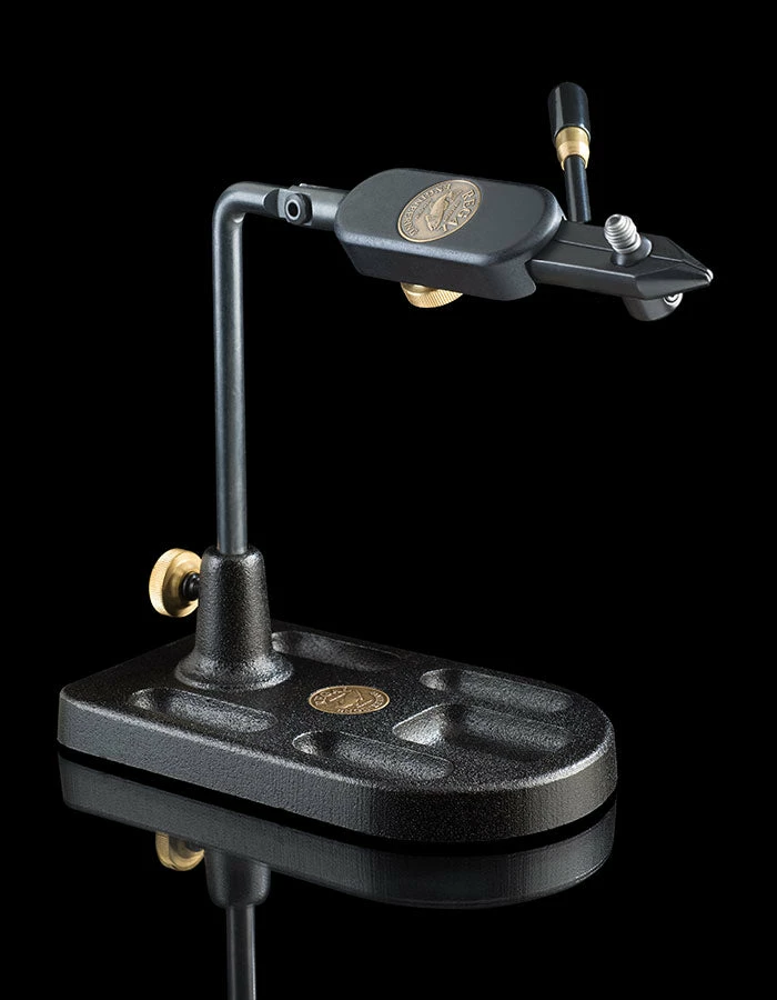 The REGAL MEDALLION VISE is the flagship of Regal’s line. This iconic and often imitated design is the pinnacle of vise technology. Open the Jaws, insert your hook and start tying. There is nothing to adjust even when you are switching from a tiny midge to a huge streamer hook. All MEDALLION VISES revolve around a 360° axis and articulate 220° up and down. This vise is available with many head and base options.