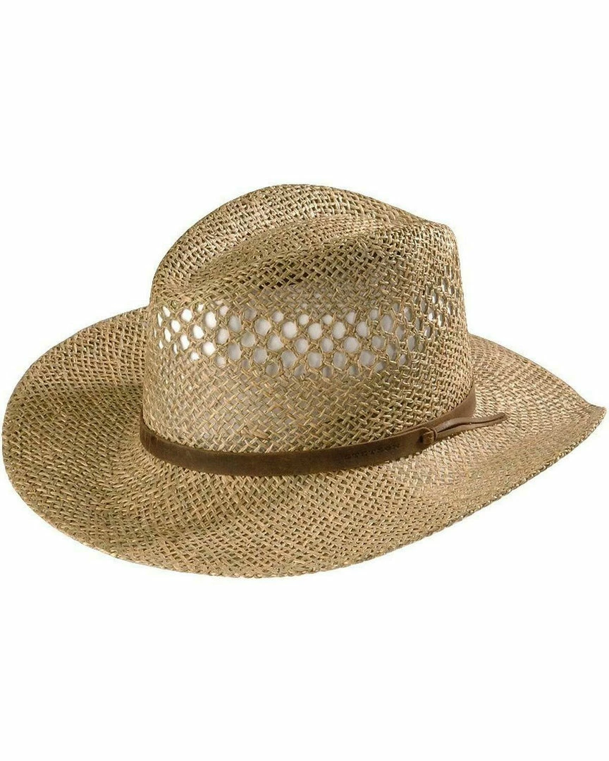 Woven of seagrass, the Dove Mountain has stylish open weave near the hat crown as well as a leather hatband. A 3 1/4 brim is universal in style and sun protection. Unisex sizing.