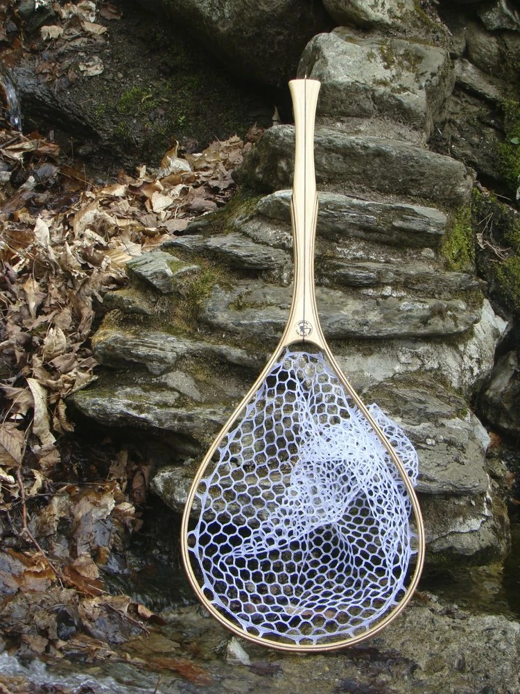 As an avid fisherman and fine woodworker of 40 years, Tom Stickney has blended both of his passions to create a net that is second to none. The nets are hand crafted with only the finest hardwoods, finished with a long lasting spar polyurethane and come with a clear rubber bag that is less harmful when releasing fish.