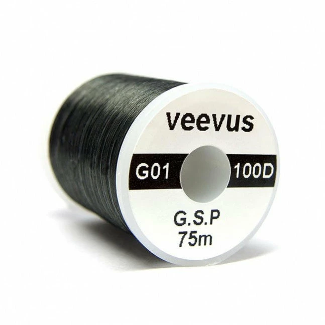 Veevus G.S.P. thread has been designed with a slight twist preventing it from opening up, and thereby making tying with it a breeze. It lays completely flat and is the smoothest thread to spin hair with. It is currently available in 2 colors in the following sizes, 200Denier, 150Denier, 100Denier and 50Denier. Also Veevus are the first to offer a 30Denier GSP(This size is available in white only). Each spool contains 75m which is 67% more thread than offered by anyone else in our industry.