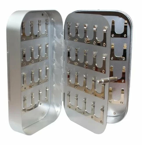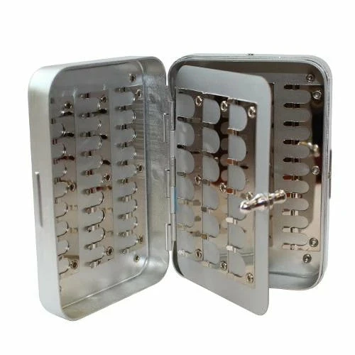 1402 – Small 7’s and 10’s clips with swing leaf. Carries 170 flies. 4 3/4 ” x 3 1/2 ” x 1 1/8 “